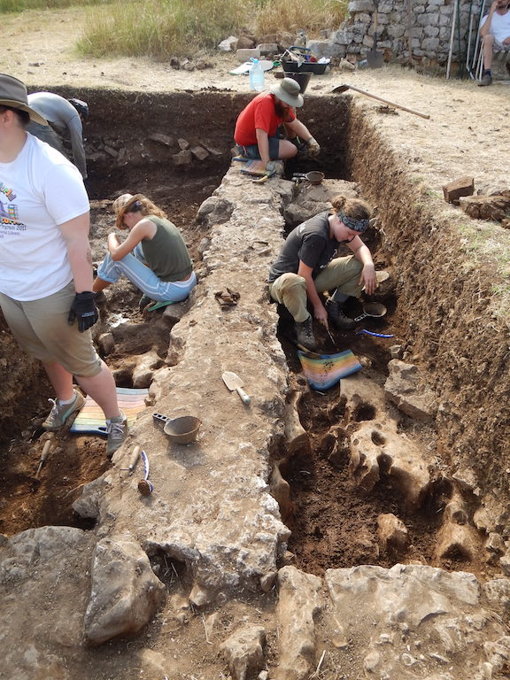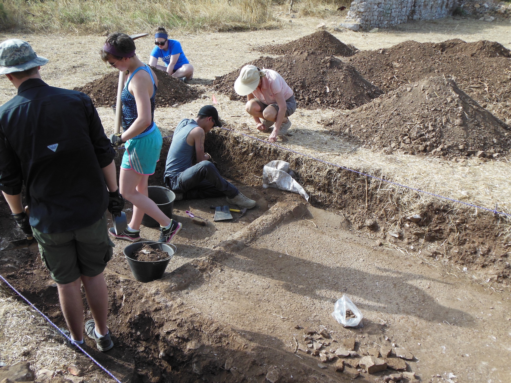 The investigations remained selective and diagnostic. The objective was to obtain the maximum relevant data from new probes and small-scale expansions of the previous excavations in order to plan future systematic research and eventual preservation and protection of the entire villa site. The 2008 excavation of the structures on the north side of Building A was expanded to the east. New structures were found in that area, which extended further eastward into the wooded terrain. Two small probes were dug on the west side of the standing wall (wall B), with the objective to reach a floor and to relate wall B to architectural features still underground, which were indicated by the magnetometric survey in 2007. The foundation of wall B was reached on the bedrock, 0.85 m below the present land surface. A floor was not found. In the probe at the north end of wall B a corner of another structure abutting the wall was uncovered. Rich finds of chronologically diagnostic pottery fragments dated from the Hellenistic period in the 2nd century BCE to the late Roman period in the 6th c. CE.